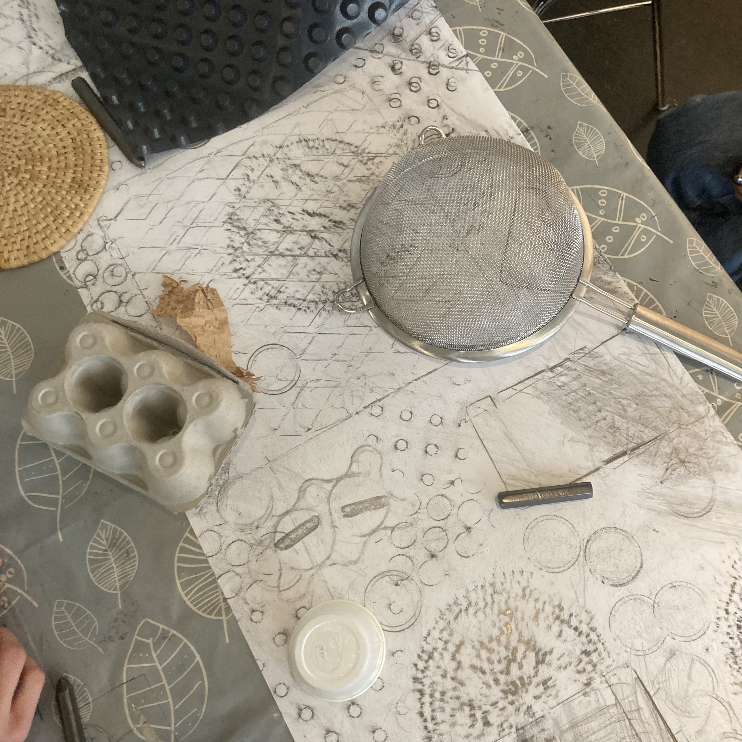 Vertraute Materialien, wie Holz, Folien, Dosen, Kronkorken und andere Fundsachen wurden von den SchülerInnen der 8a durch gezielte Eingriffe, Irritationen und Neuinterpretationen zu eigenständigen Werken transformiert. Mit Hilfe von Fotografie, Installation, Materialdruck und Frottage wurde die Ausstellung der Hamburger Künstlerin Rahel Bruns so erkundet und erweitert . Ausschnitte der entstandenen Werke sind in Ausstellung in der Schule zu sehen.