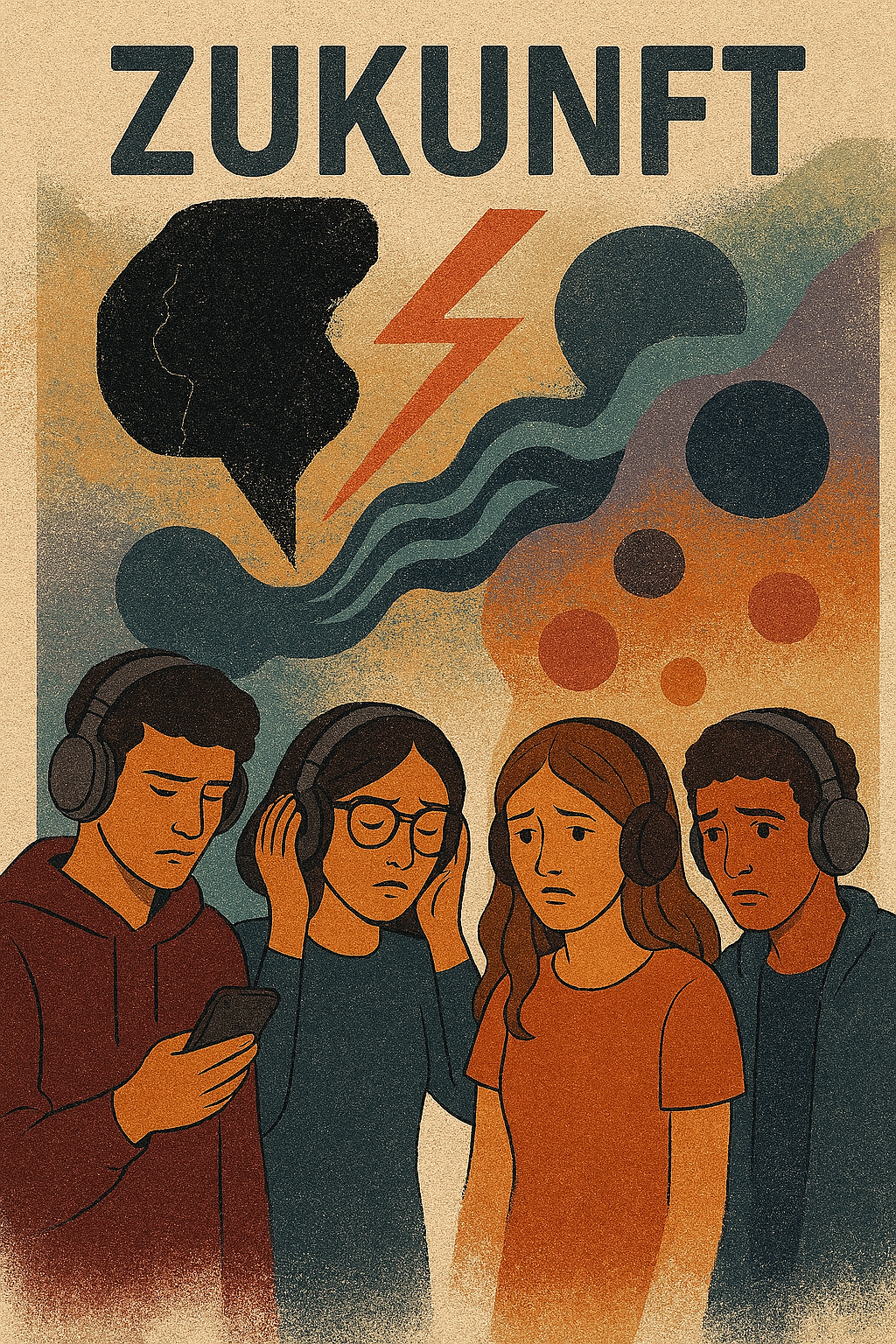 In unserer Soundcollage haben wir uns auf eine Zeitreise von der Gegenwart in die Zukunft begeben. Dabei fokussieren wir uns auf Aspekte von politischen sowie klimatischen Krisen wie der Rechtsruck oder Klimakatastrophen. Wir wollten aber auch mögliche gesellschaftliche Aspekte beleuchten – etwa Fortschritt in der Raumfahrt oder eine zunehmende Homogenisierung von Sprache und Kultur. All dies trifft zu Ende noch einmal unter dem Aspekt der Ungewissheit der Zukunft zusammen – denn die Zukunft ist ungewiss, die von uns beleuchteten Aspekte sind lediglich eine Hypothese.