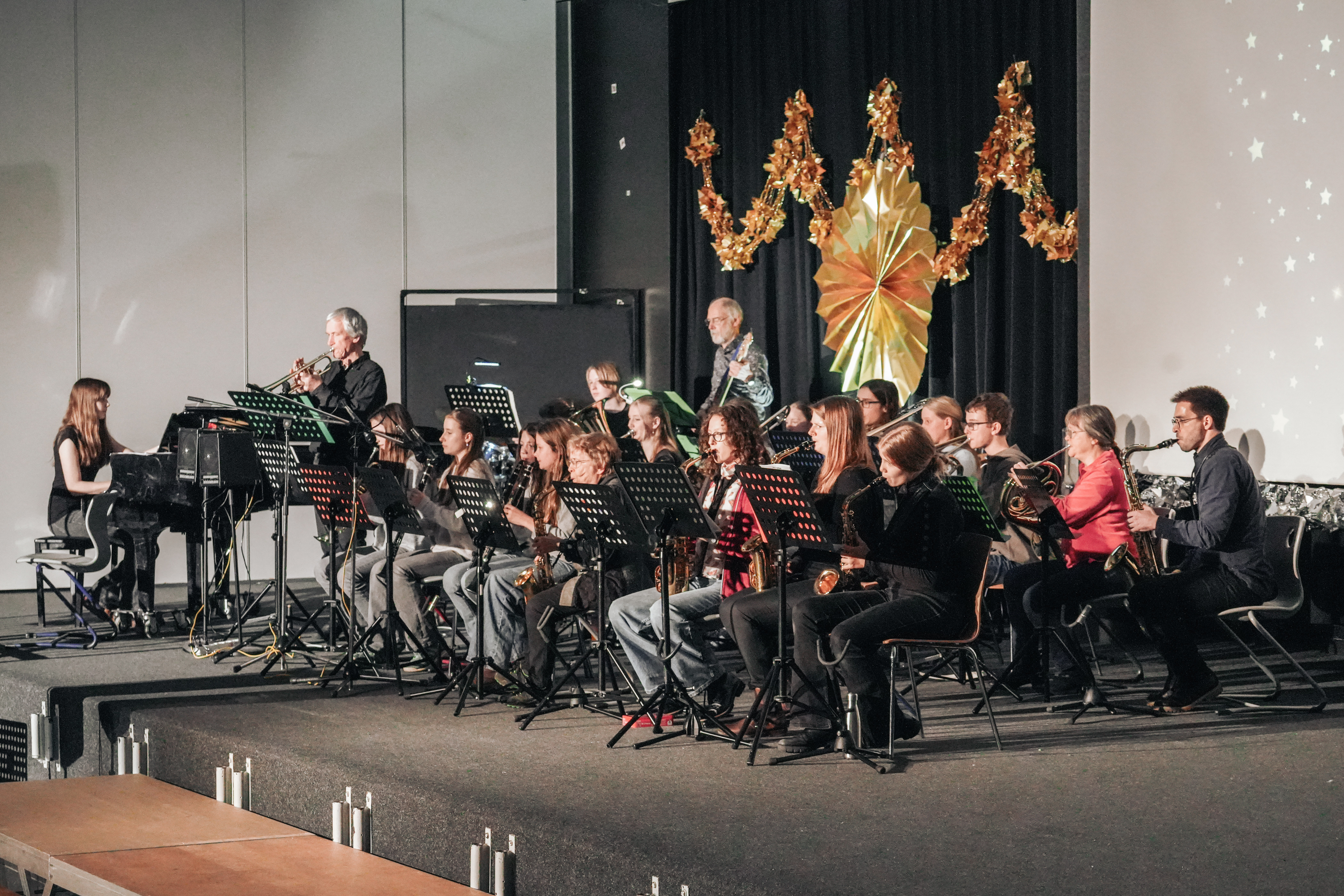 Das Foto zeigt die Big band beim Weihnachtskonzert.